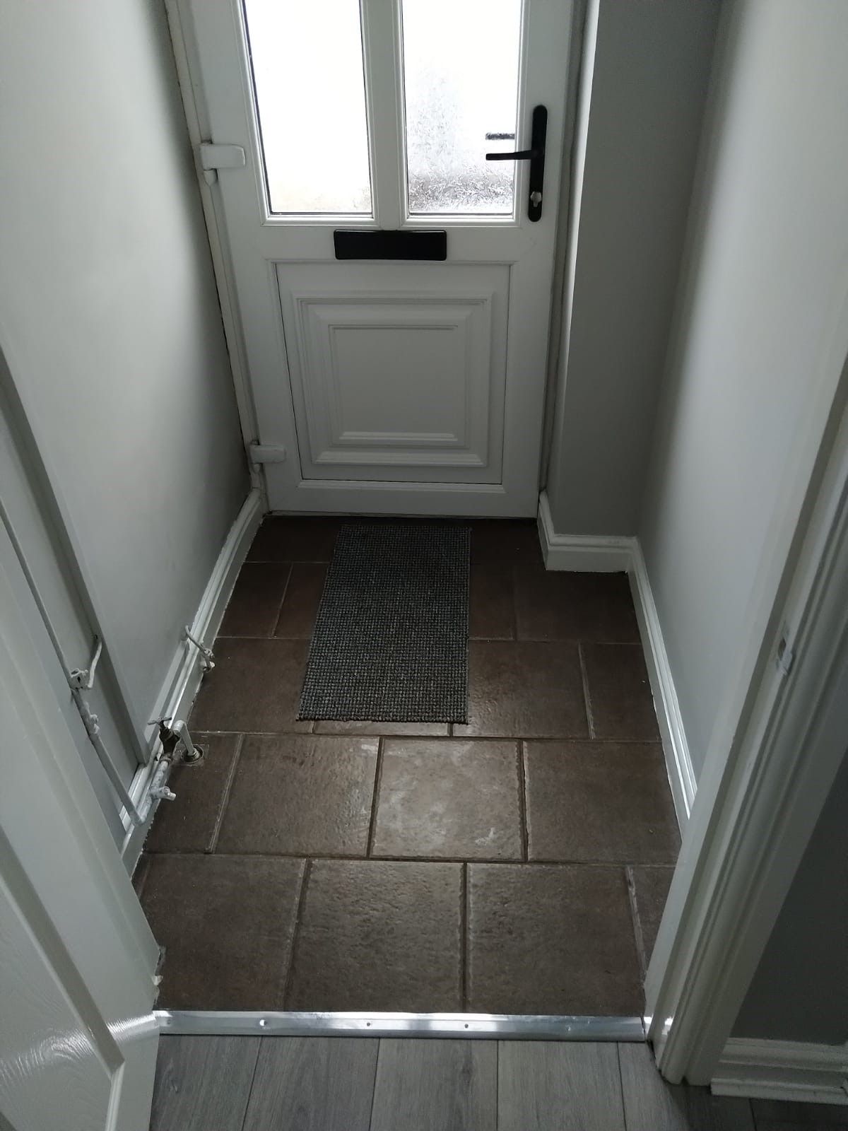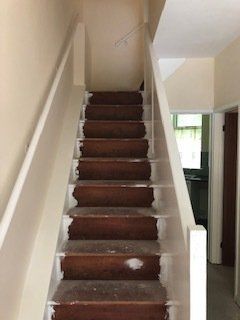 Passage and stairs: The passage has new click tile flooring and stairs has carpet fitted, with handrail on stairs, a door that leads to the lounge.