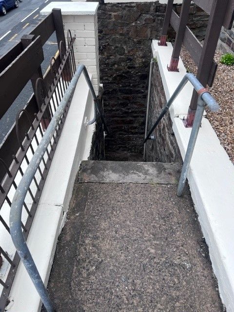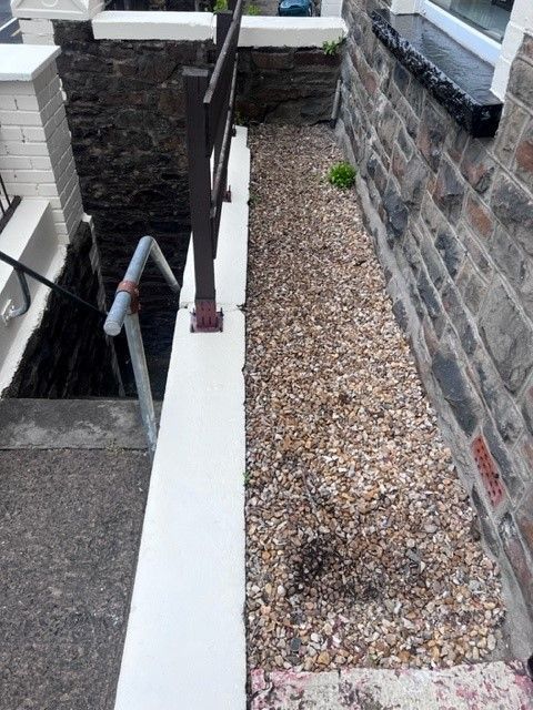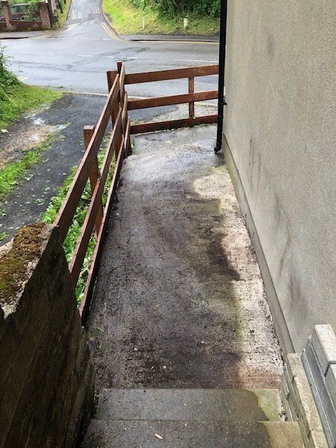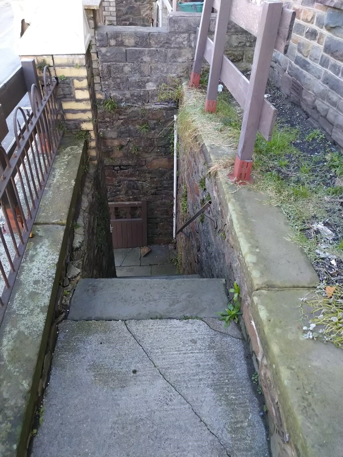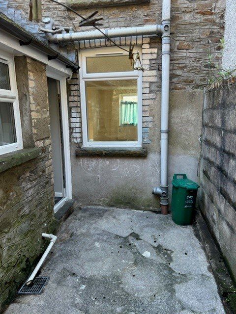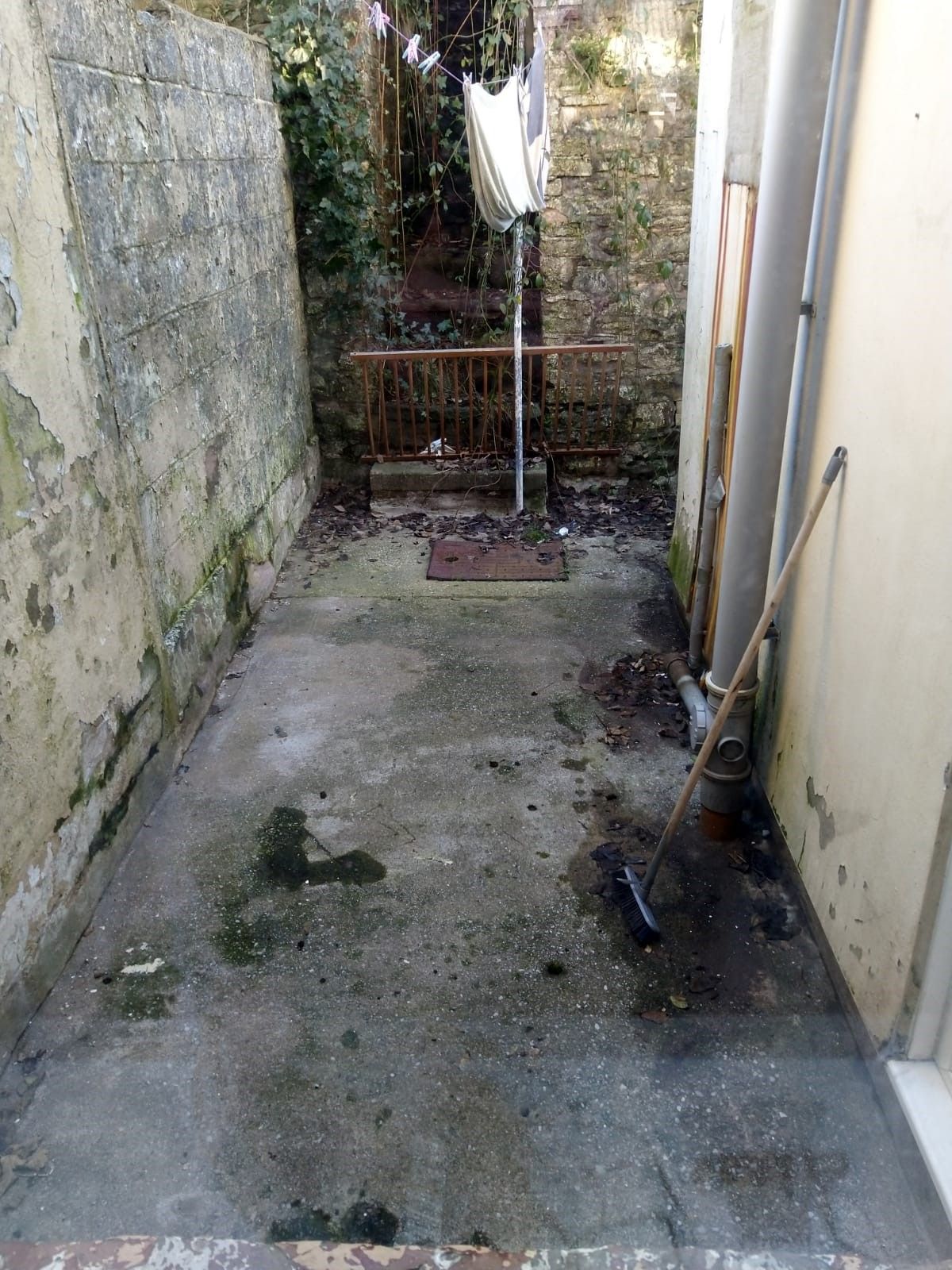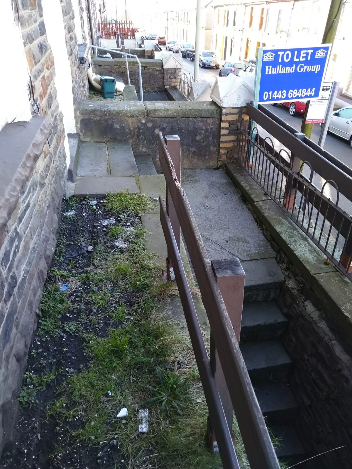 EXTERNAL - Small forecourt to front of property with steps, nice size enclosed rear garden up steps and a concrete back yard area