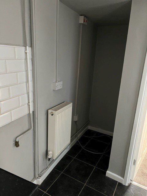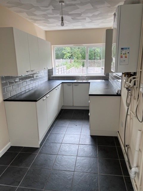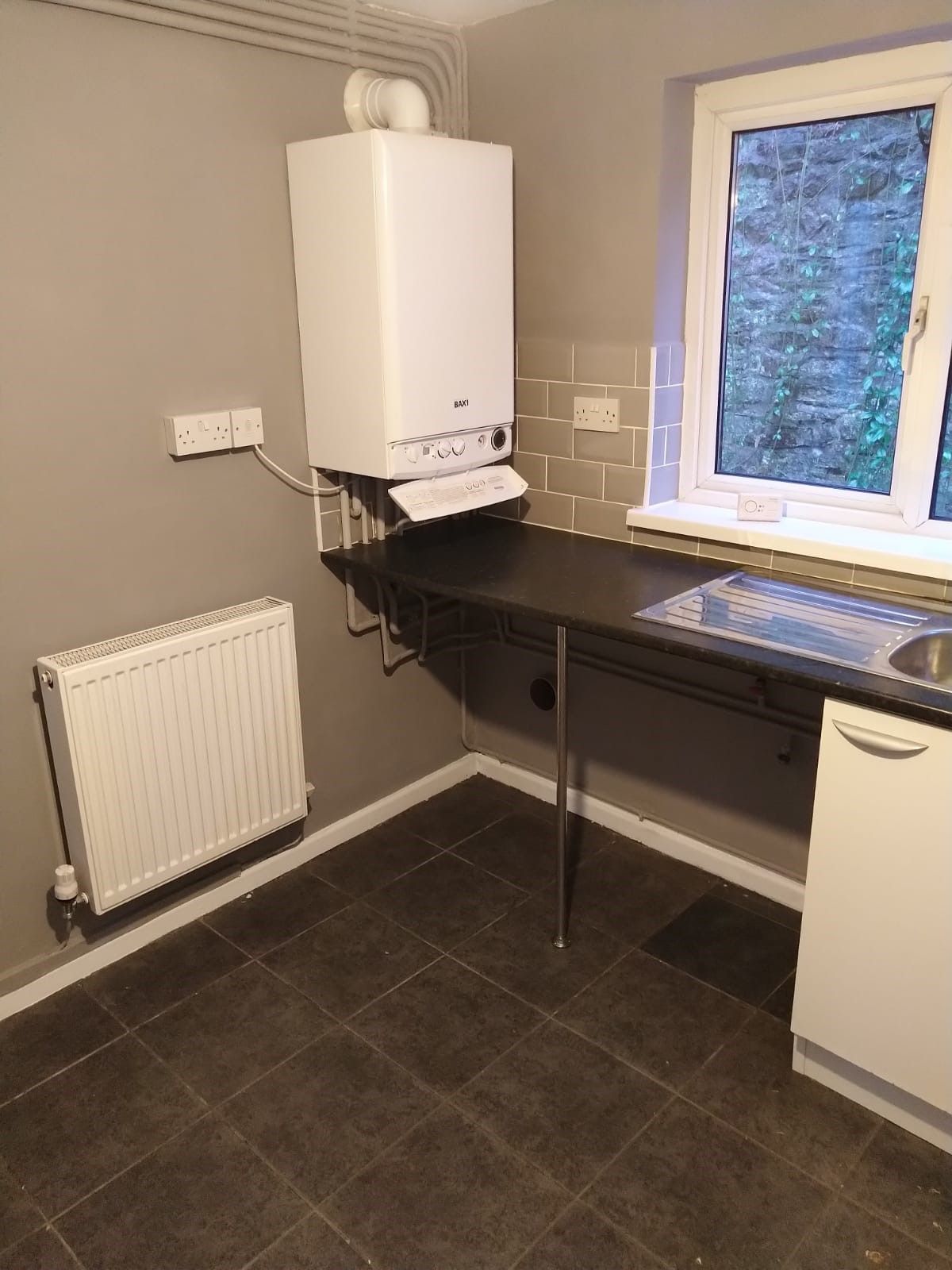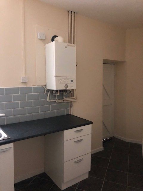 Kitchen: The kitchen is completely fitted with modern units and comprises a sink with a wide range of wall and base units. These units come with tiled splash backs. There is a radiator, you also have an electric and gas cooker points, extractor fan, electric power points and washing machine taps. New ceramic floor tiles, and a gas combination boiler fitted. Window giving plenty of light and door leading to outside area. carbon monoxide alarm.