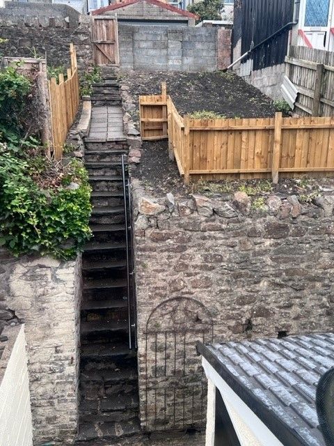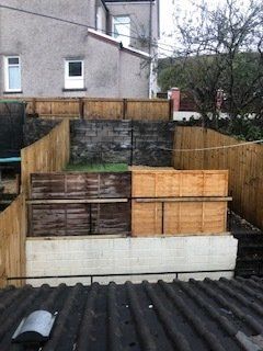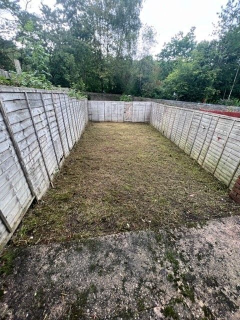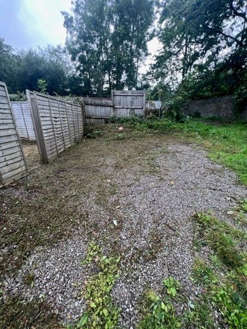 Rear: Completely done with new panel fencing enclosing the whole garden with a back gate and chippings for parking beyond