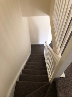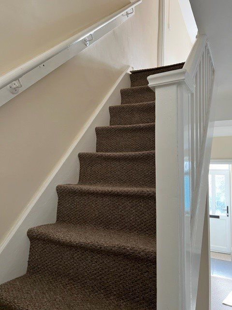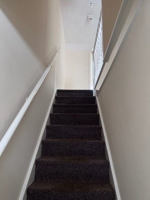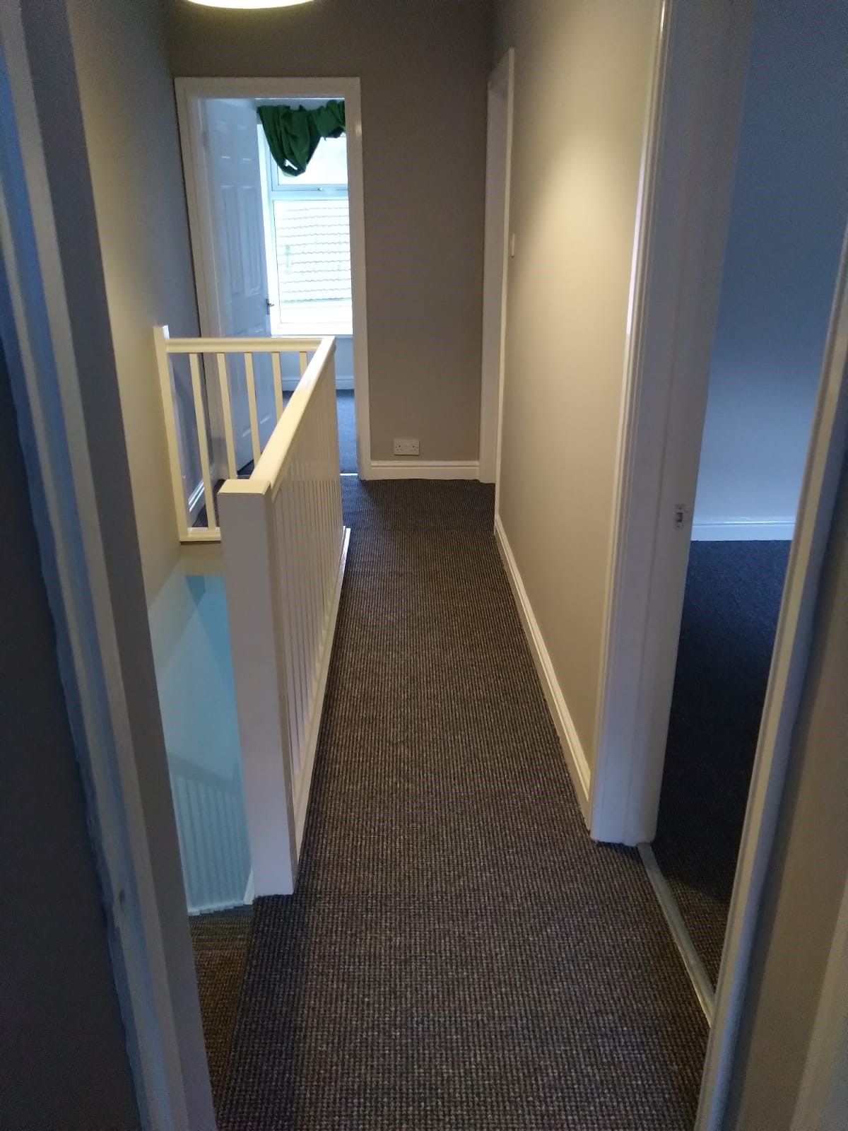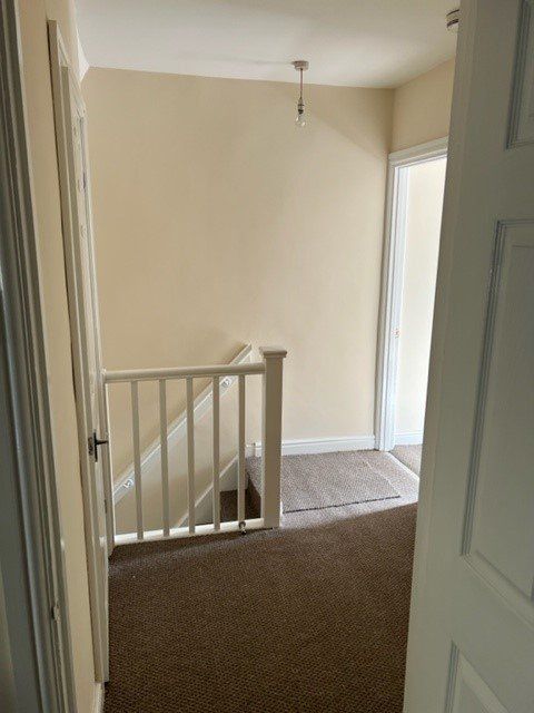 STAIRWAY and LANDING - New carpet on stairs and landing. Smoke Alarm. Doors leading to Bedrooms and Bathroom.