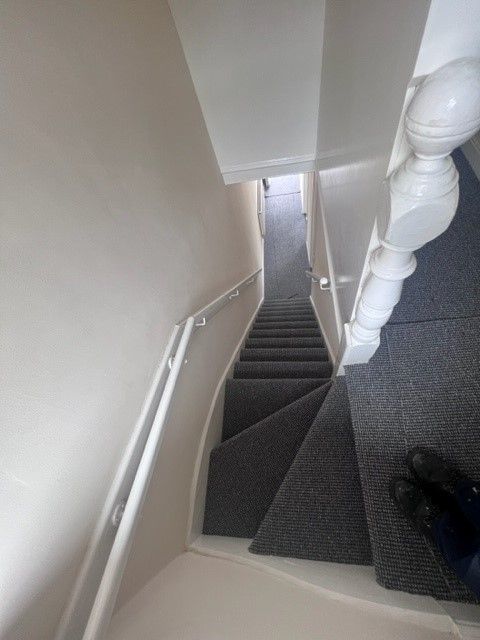 STAIRWAY and LANDING - Carpet on stairs and landing. Handrail. Smoke Alarm. Doors leading to Bedrooms and Bathroom.